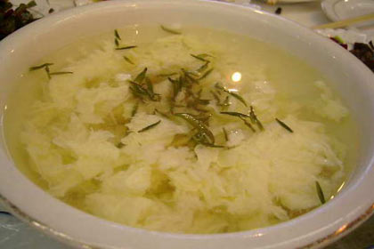 珍貴的“龍井茶”,如果泡過一兩趟水以后就倒掉,實(shí)在有點(diǎn)可惜了。如果用泡過的茶葉做一道“綠茶拌豆腐”的菜肴,在這個(gè)初春時(shí)節(jié),吃起來倒別有一番橄欖菜的味道,且營養(yǎng)豐富,非常清涼、好吃。