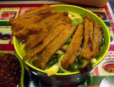 將雞胸肉縱切成絲,用刀背輕輕敲打,撒上精細(xì)食鹽和黃酒,放置4-5分鐘。雞蛋打入碗中,加冷水150毫升,調(diào)入小麥粉,迅速用力攪勻成蛋糊。雞肉絲蘸上蛋糊,在熱油中炸熟,撈出放在粳米飯上,撒以綠茶末、細(xì)鹽及干紫菜絲即成。