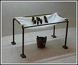 團(tuán)茶水份若未干,易發(fā)霉,難以存藏故須焙干以利收藏。掠干后的團(tuán)茶,先用棨(錐刀)挖洞,再用竹撲將已干的茶穴打通,最后用一根細(xì)竹棒將一塊塊的團(tuán)茶串起來(lái),放在棚(木架)上焙干。焙爐掘地二尺深,寬二尺半,長(zhǎng)一丈,上有低墻。焙茶的木架高一尺,分上、下二棚,半干的團(tuán)茶放在下棚,全干燥后則移到上棚。
