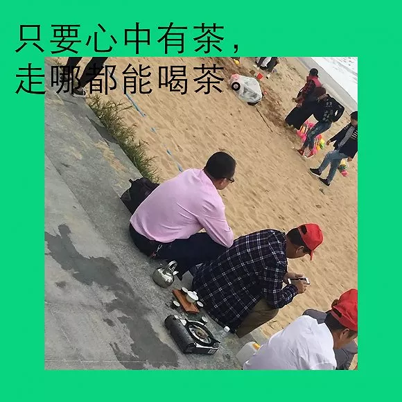 即使是去海邊玩,出去爬山和戶外徒步的時(shí)候,也不忘泡上工夫茶,下雨的時(shí)候打上傘繼續(xù)喝。