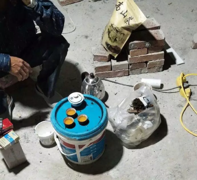 裝修工地這么雜亂的地方,也阻止不了潮汕人喝工夫茶。