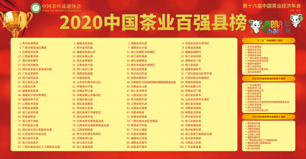 2020中國茶業(yè)百強(qiáng)縣名單公布,紫金入圍中國茶業(yè)百強(qiáng)縣