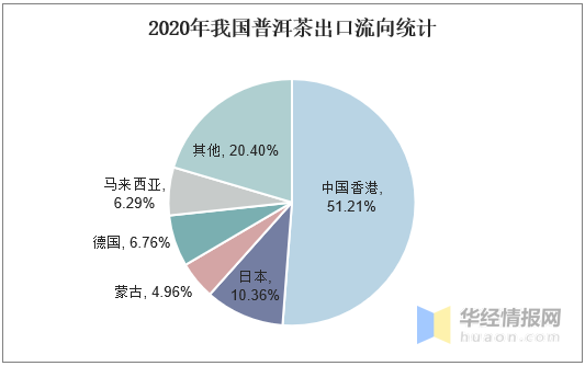在海外國家當(dāng)中日本、馬來西亞等國是我國普洱茶出口主要對(duì)象,2020年除51.21%的出口普洱茶流入香港以外,日本出口量占到我國普洱茶出口總量的10.36%。