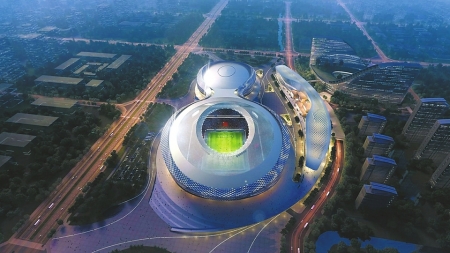 鳳凰山體育公園是第31屆世界大學(xué)生夏季運動會主場館之一,也是2023年亞洲杯主要比賽場館,包含一個6萬座專業(yè)足球場、一個1.8萬座的綜合性體育館,配套有大量的主題商業(yè)和城市綠地公園。